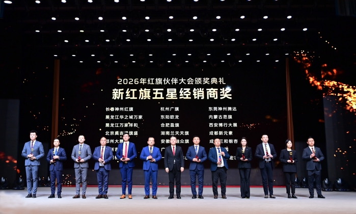 會上,集團公司董事長、黨委書記邱現(xiàn)東講話,總經(jīng)理、黨委副書記劉亦功致辭;會議發(fā)布紅旗營銷體系2026年目標任務及達成策略,分享優(yōu)秀營銷案例,表彰優(yōu)秀紅旗伙伴。