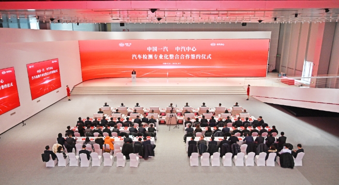 來源:創(chuàng)意傳播中心本網(wǎng)訊(記者 鄧涵予/文 王雷/攝影)2月4日,中國一汽與中汽中心汽車檢測(cè)專業(yè)化整合合作簽約儀式在長春舉行。中國一汽董事長、黨委書記邱現(xiàn)東,中汽中心董事長、黨委書記安鐵成,長春市委常委、常務(wù)副市長吳波出席并致辭。中國工商銀行董事會(huì)秘書兼高級(jí)業(yè)務(wù)總監(jiān)田楓林,中國汽車工程學(xué)會(huì)副秘書長趙立金,長春市汽開區(qū)黨工委書記李國輝出席儀式。中國一汽紅旗品牌運(yùn)營委員會(huì)副總裁兼研發(fā)總院院長蔣文虎,中汽中心黨委委員、副總經(jīng)理周華代表雙方簽署有關(guān)協(xié)議。中汽中心副總經(jīng)理張嘉禾主持簽約儀式。