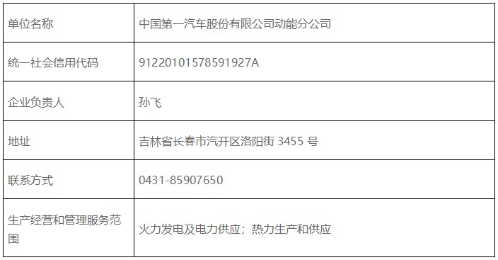 來源:中國第一汽車股份有限公司動能分公司一、企業(yè)基本情況