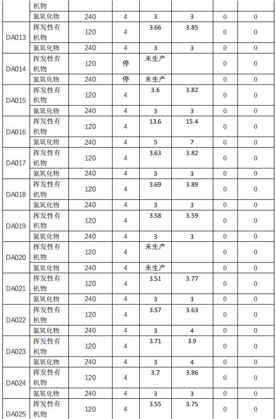 備注:凈月廠區(qū)二季度無夜間生產(chǎn),四季度無生產(chǎn)。