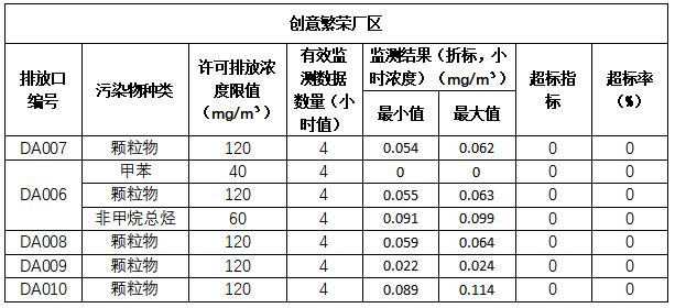 主要污染物排放濃度情況詳見表3至表6。