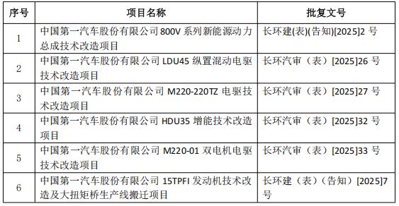 一汽旗新動力(長春)科技有限公司境影響評價批復信息詳見表7。