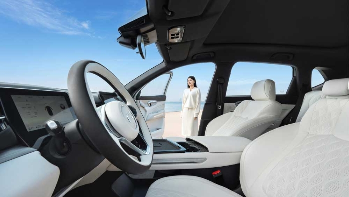 悅意07的內(nèi)飾,擁有家居化座艙,通透光線與全軟化座艙包覆的融合,旨在打造一個(gè)如家一般舒適放松的駕乘空間,淺色系的座椅與門板包覆,讓悅意07的內(nèi)飾更有家居味道,溫暖而松弛。