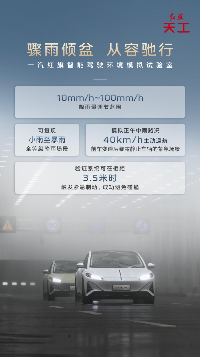 穿透智造雨霧,看見國車安全。500+復(fù)雜場(chǎng)景的千萬次復(fù)現(xiàn),只為確保實(shí)際行駛的安心可靠。紅旗汽車,時(shí)刻守護(hù)你的每一次出行。