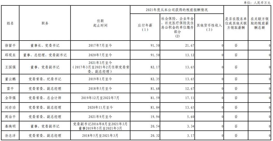 上表披露信息為我公司企業(yè)負(fù)責(zé)人2021年度全部應(yīng)發(fā)稅前薪酬(不含2021年發(fā)放的以往年度薪酬),按國家規(guī)定由單位繳存各種社會(huì)保險(xiǎn)等。其中,第(1)項(xiàng)由國務(wù)院國資委核定。