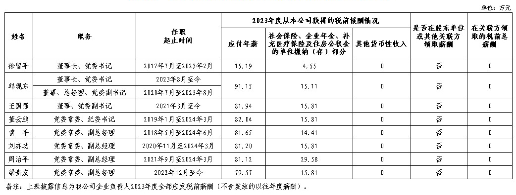 中國第一汽車集團有限公司企業(yè)負責(zé)人2023年度薪酬情況
