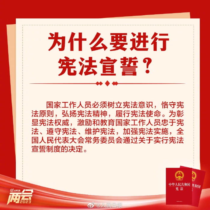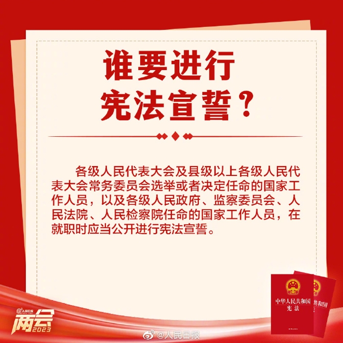 3月10日上午,十四屆全國人大一次會議舉行憲法宣誓儀式。為什么要進行憲法宣誓?宣誓儀式怎樣進行?對宣誓場所有何規(guī)定?關(guān)于憲法宣誓的9個知識點,了解一下。