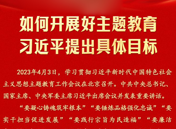 習(xí)近平指出,以縣處級(jí)以上領(lǐng)導(dǎo)干部為重點(diǎn)在全黨深入開(kāi)展學(xué)習(xí)貫徹新時(shí)代中國(guó)特色社會(huì)主義思想主題教育,是貫徹落實(shí)黨的二十大精神的重大舉措,對(duì)于統(tǒng)一全黨思想、解決黨內(nèi)存在的突出問(wèn)題、始終保持黨同人民群眾血肉聯(lián)系、推動(dòng)黨和國(guó)家事業(yè)發(fā)展,具有重要意義。這次主題教育: