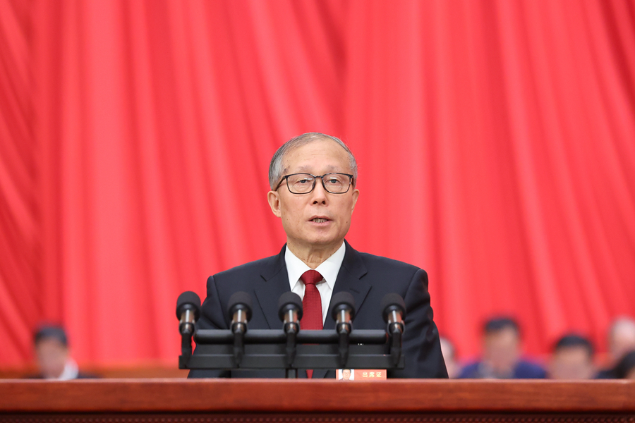 3月5日,第十四屆全國人民代表大會第二次會議在北京人民大會堂開幕。受全國人大常委會委托,全國人大常委會副委員長李鴻忠作關(guān)于國務(wù)院組織法修訂草案的說明。新華社記者 劉衛(wèi)兵 攝