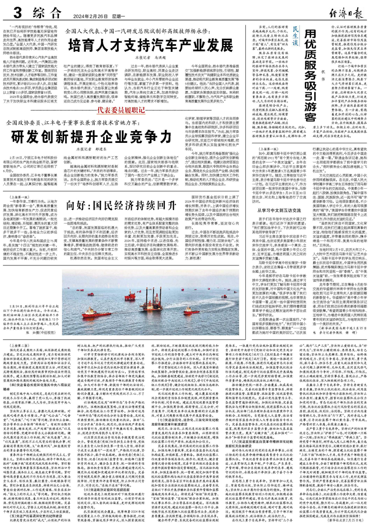 今年全國兩會,楊永修代表準(zhǔn)備提交“加強(qiáng)新能源領(lǐng)域原創(chuàng)性、引領(lǐng)性、顛覆性技術(shù)攻關(guān)”“構(gòu)建職業(yè)本科優(yōu)質(zhì)就業(yè)渠道,推動(dòng)現(xiàn)代職業(yè)教育高質(zhì)量發(fā)展”等5份建議。他說:“當(dāng)好全國人大代表,就要始終傾聽人民心聲,充分反映群眾意愿,為國家決策提供堅(jiān)實(shí)依據(jù)。我將積極履職、不懈努力,為汽車產(chǎn)業(yè)和職業(yè)教育高質(zhì)量發(fā)展作出更多努力?!保ㄓ浾撸厚R洪超)