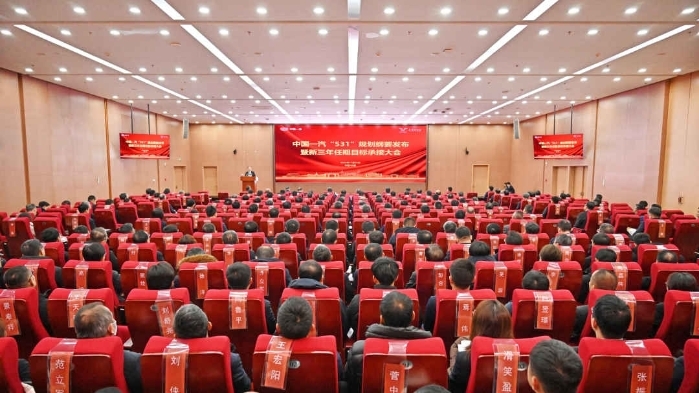 ▲中國(guó)一汽召開(kāi)“531”規(guī)劃綱要發(fā)布暨新三年任期目標(biāo)承接大會(huì)