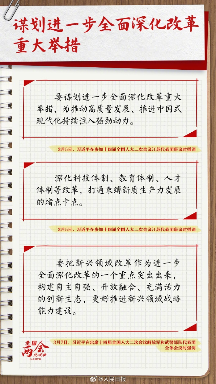 2024年全國兩會,習(xí)近平總書記三次到團(tuán)組參加審議討論,就發(fā)展新質(zhì)生產(chǎn)力、全面深化改革、統(tǒng)籌推進(jìn)科技創(chuàng)新和產(chǎn)業(yè)創(chuàng)新、穩(wěn)步提升民生保障水平等作出一系列重要論述。