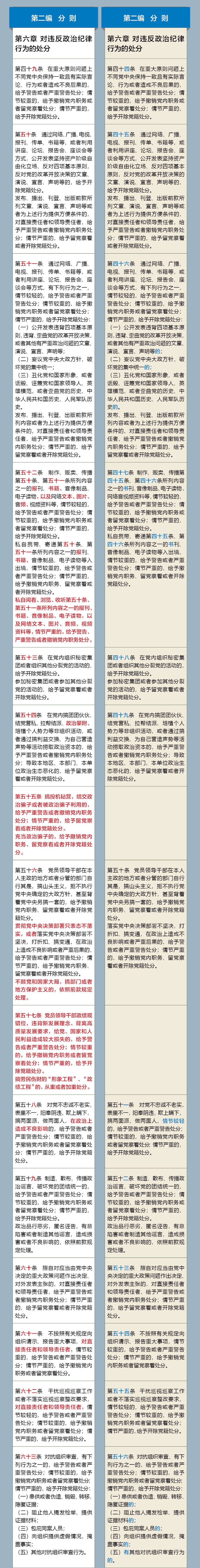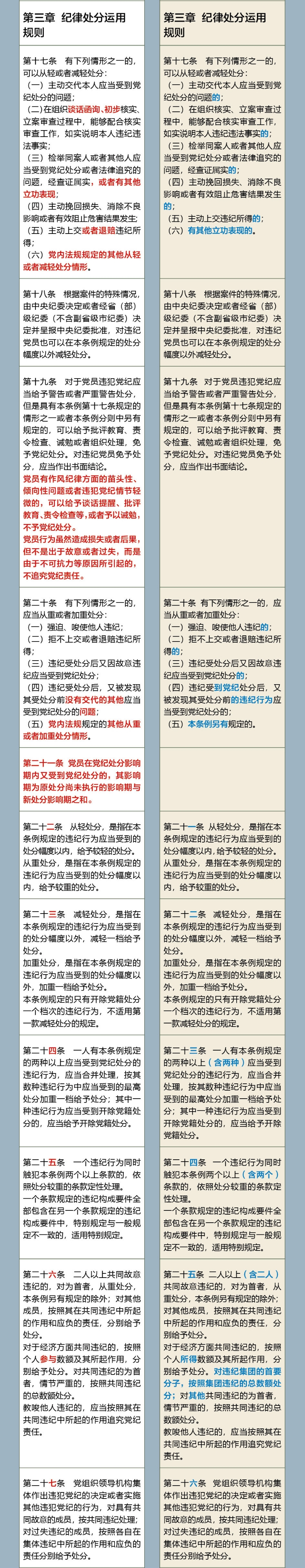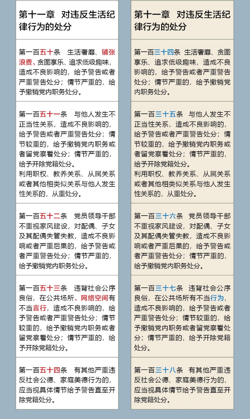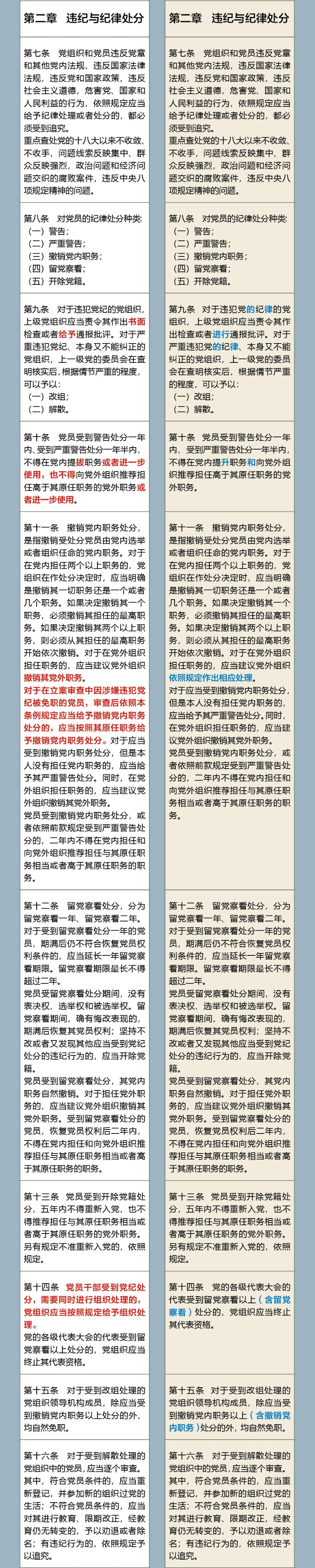 《中國(guó)共產(chǎn)黨紀(jì)律處分條例》修訂前后對(duì)照表