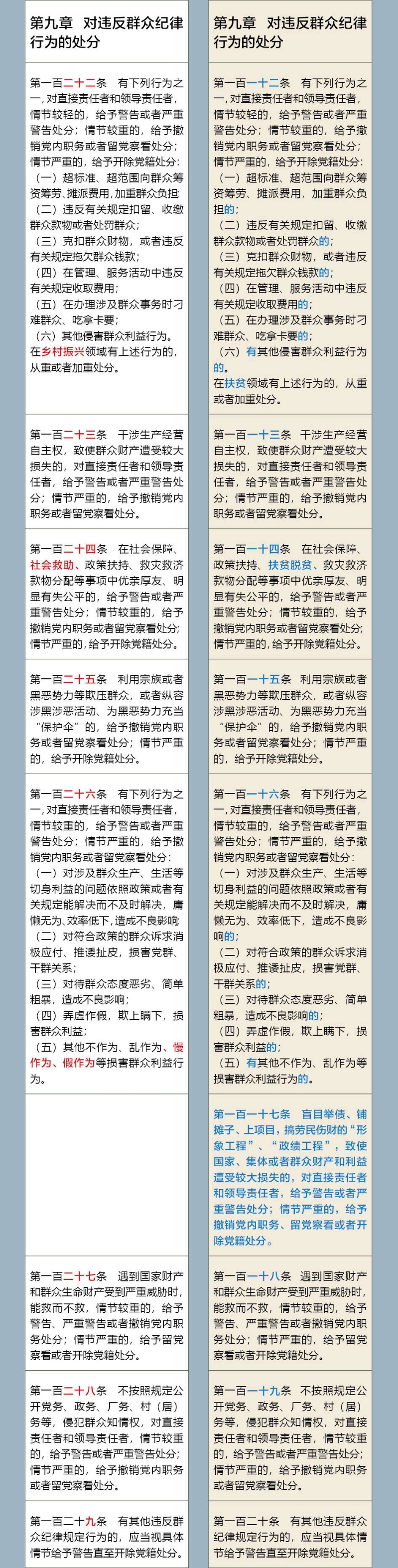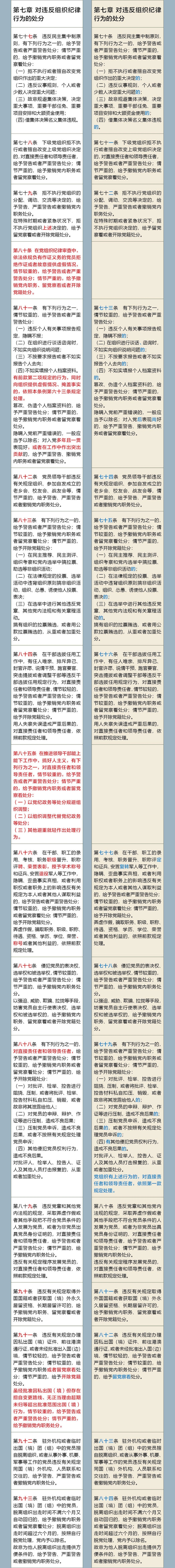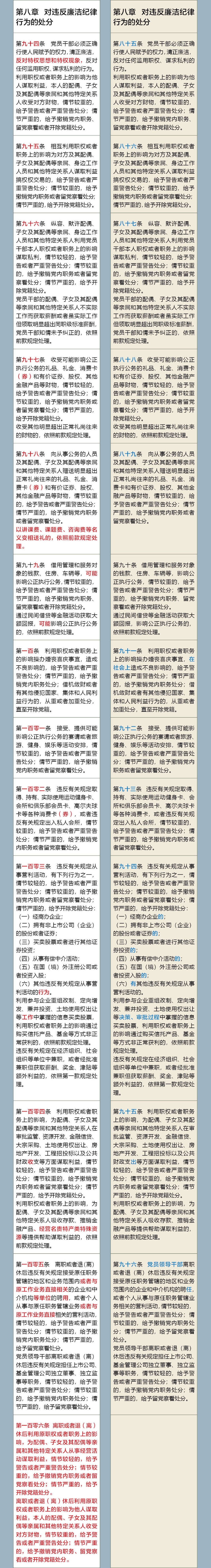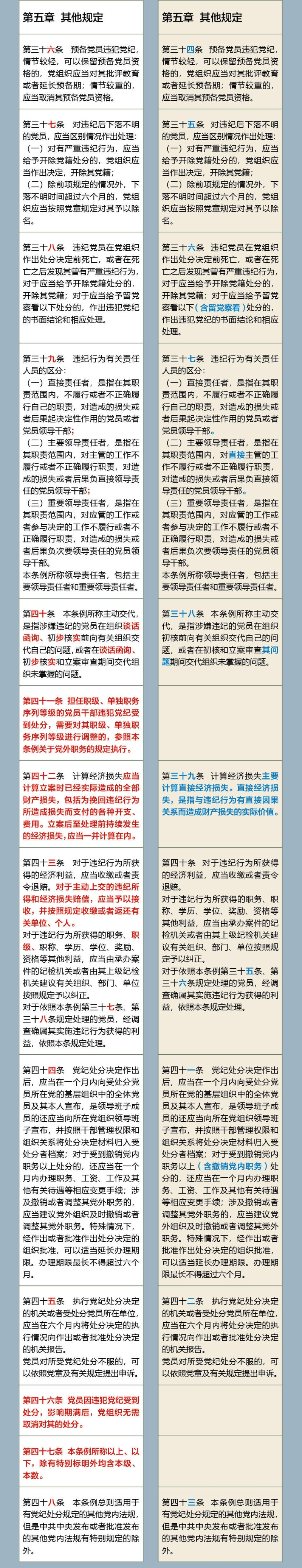 《中國(guó)共產(chǎn)黨紀(jì)律處分條例》修訂前后對(duì)照表